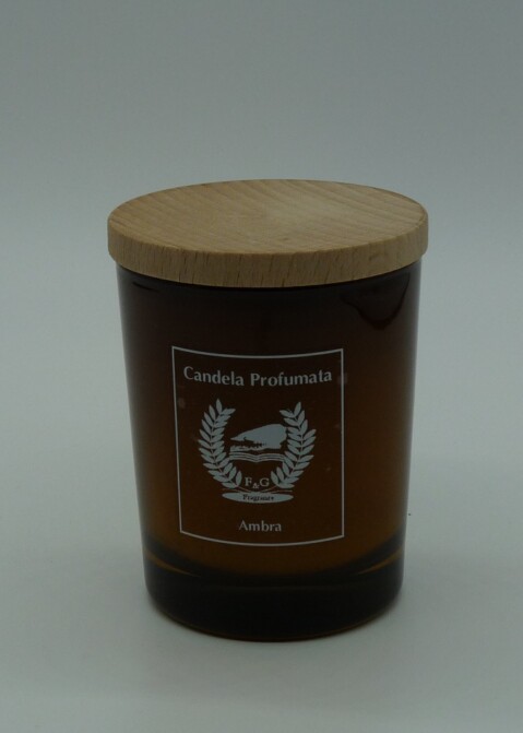 Candela profumata 150 gr vetro giallo con tappo in legno